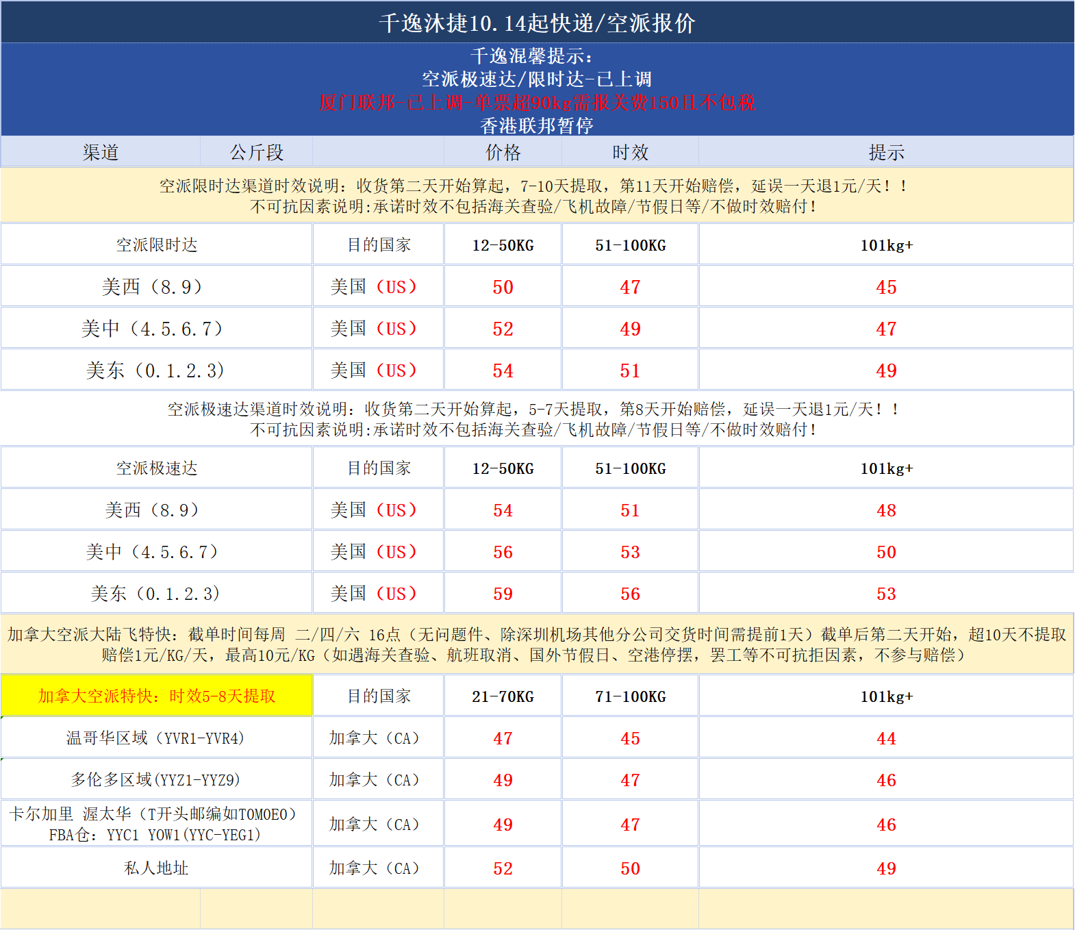 空派限时达、空派极速达、加拿大空派特快:时效5-8天提取